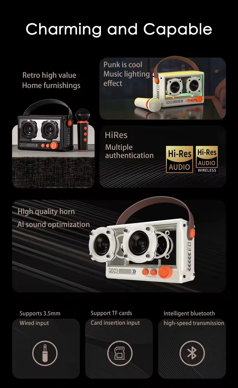 Portable 10W output power karaoke machine latest transparent design wireless microphone